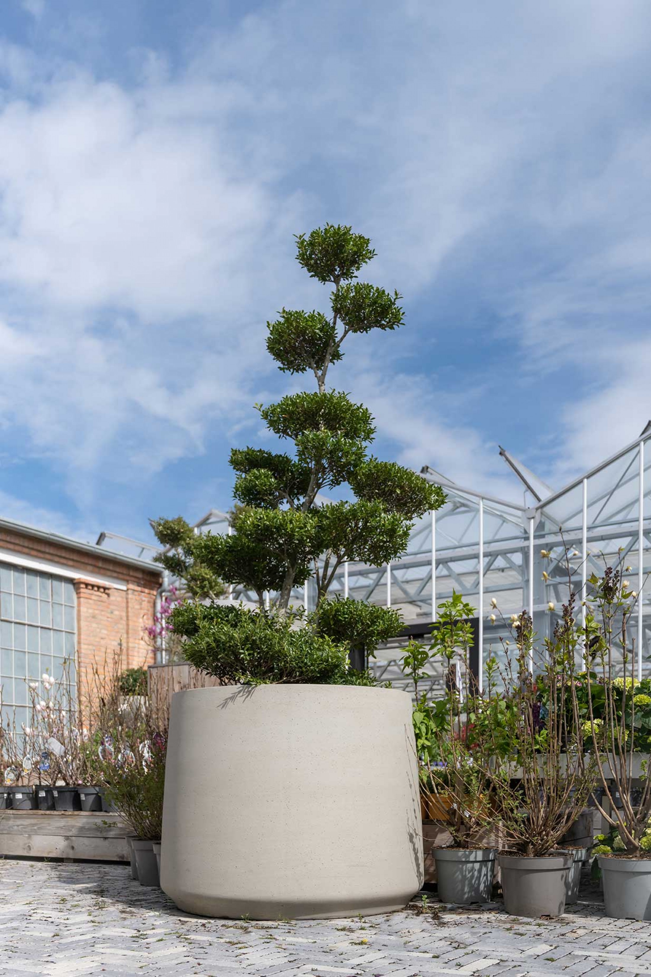 A Pottery Pots destaca-se pela utilização de materiais inovadores e duráveis, ideais para ambientes interiores e exteriores. Entre os principais, encontra-se o Fiberstone, leve, resistente e com um visual moderno; o Ficonstone, com textura natural e um aspeto mais robusto; e o Fiberclay, uma combinação refinada de argila e fibras que oferece elegância e subtileza. A marca recorre ainda ao Fiberglass, extremamente leve e ideal para vasos de grandes dimensões, e ao Sandstone, que proporciona um acabamento suave com um toque natural. Todos os materiais garantem resistência às intempéries e longa durabilidade, mantendo sempre a estética contemporânea que caracteriza a marca.