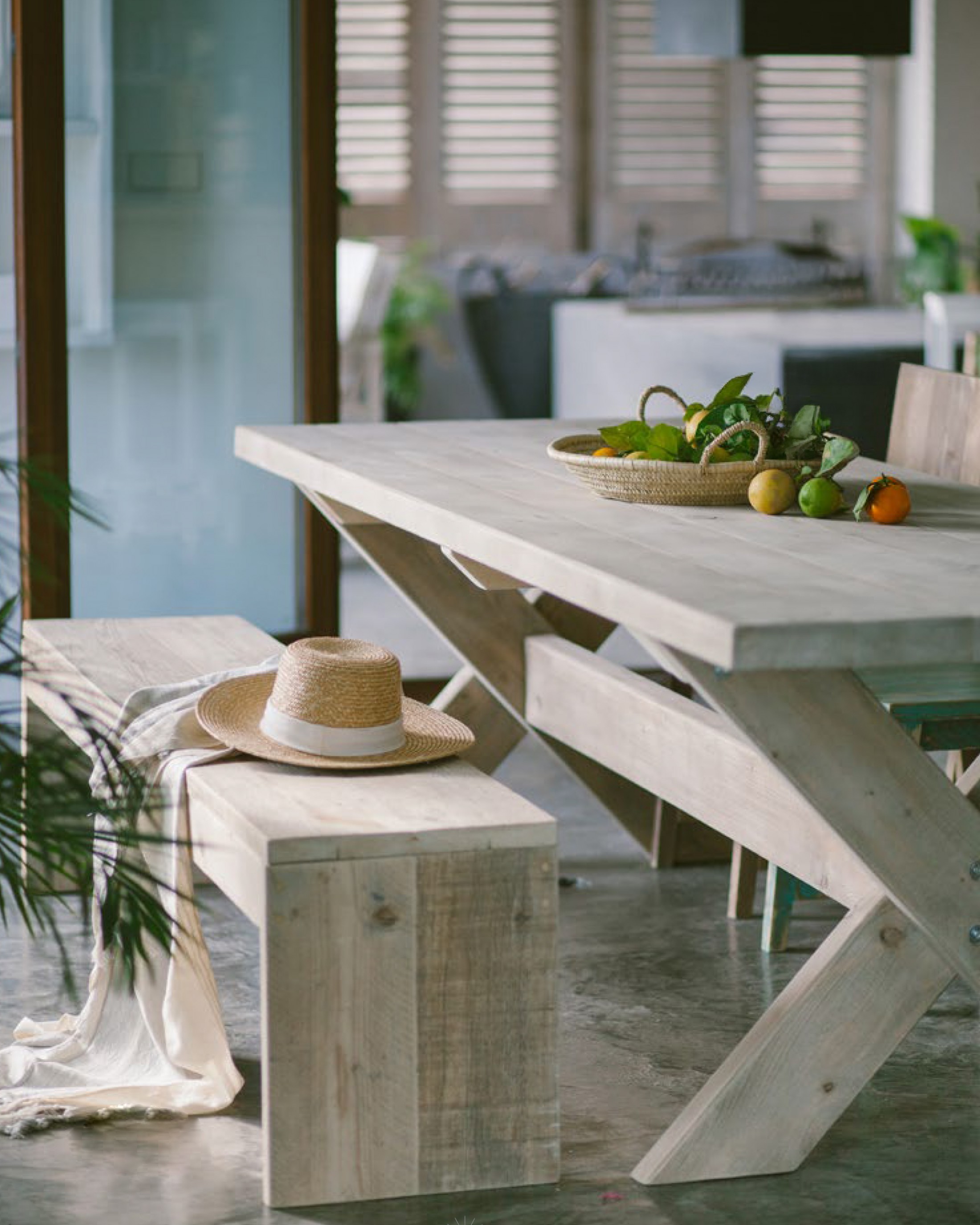 Utilizamos madeira reciclada na fabricação do nosso mobiliário.
